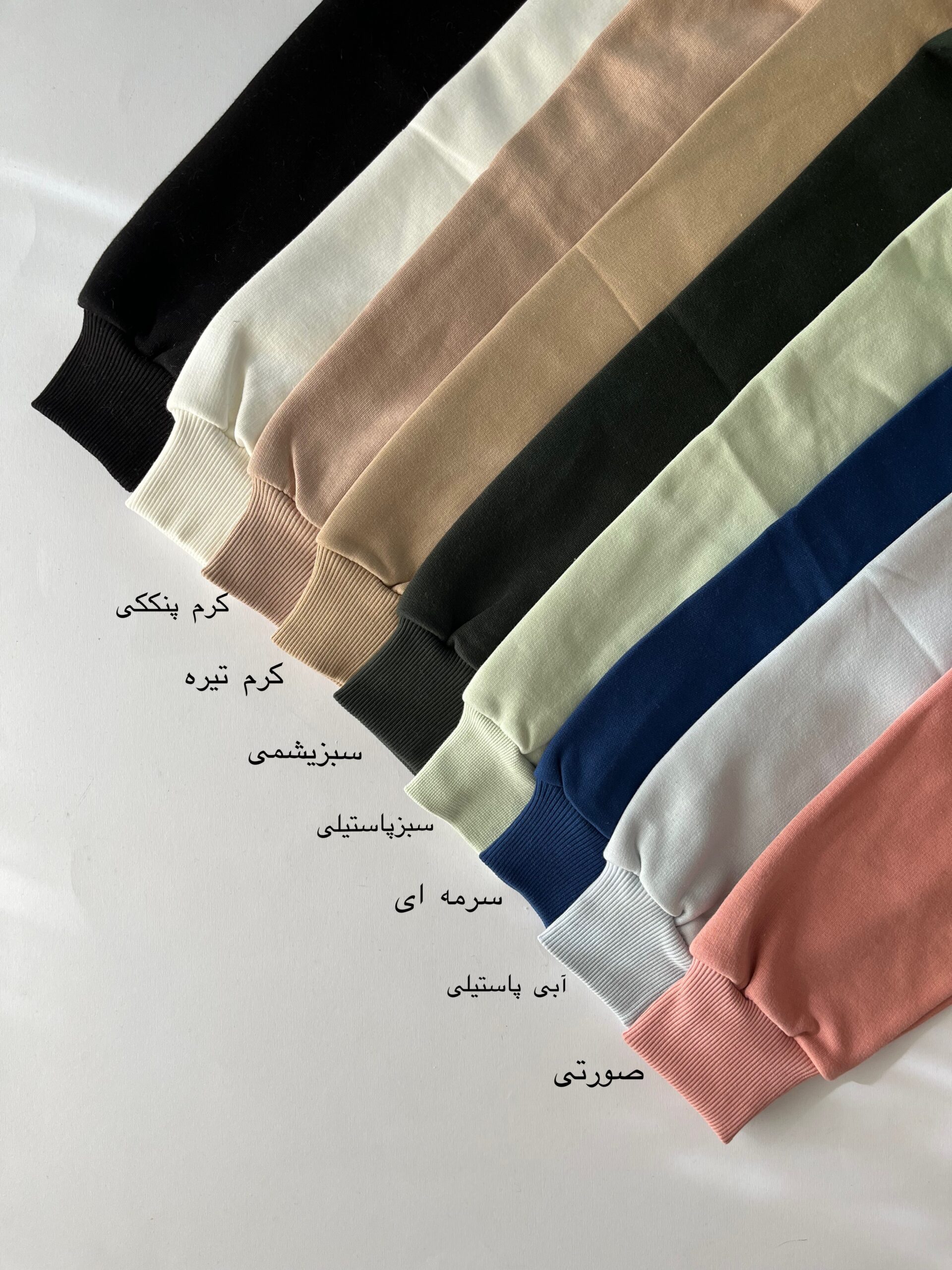 ابی پاستیلی, سبز پاستیلی, سبزیشمی, سرمه ای, سفید, صورتی, کرم پنککی, کرم تیره, مشکی |